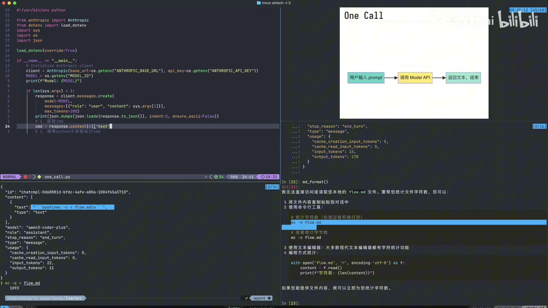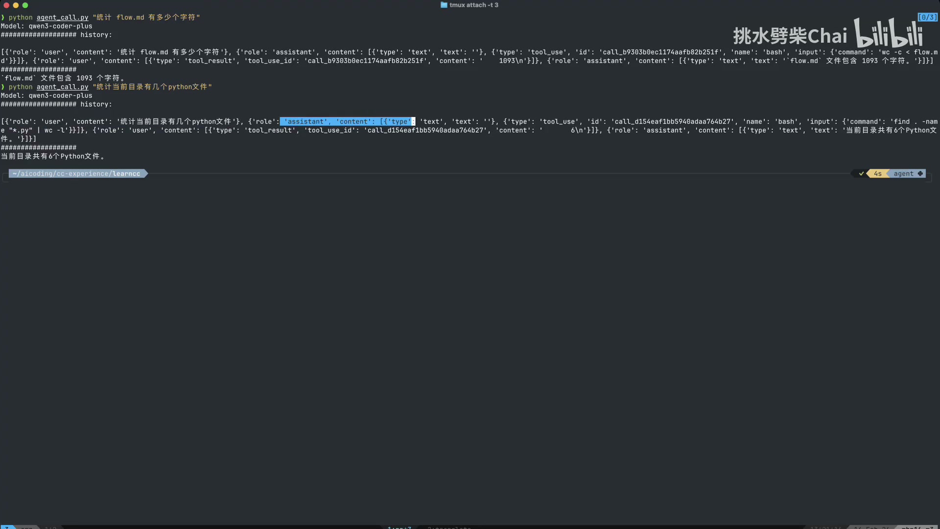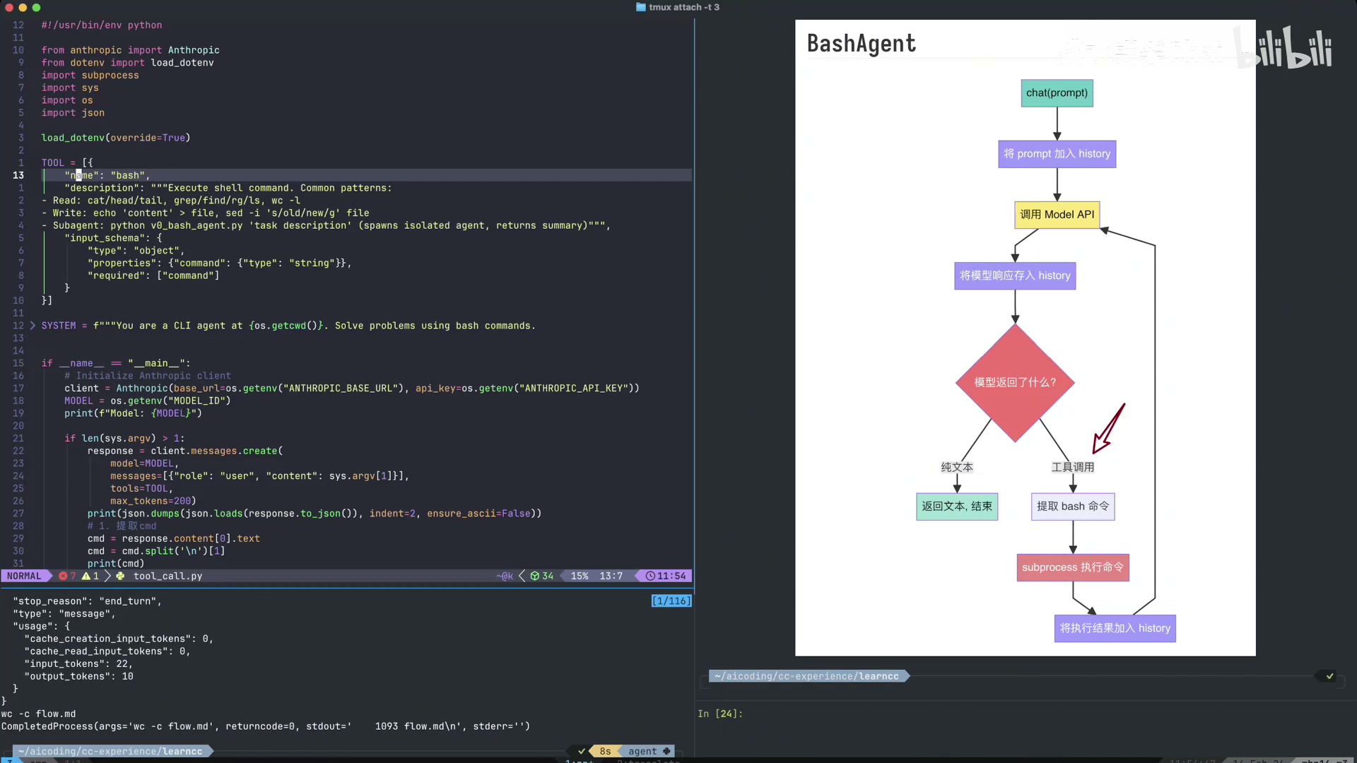 1. 模型调用 bash 工具,命令 wc -c < flow.md