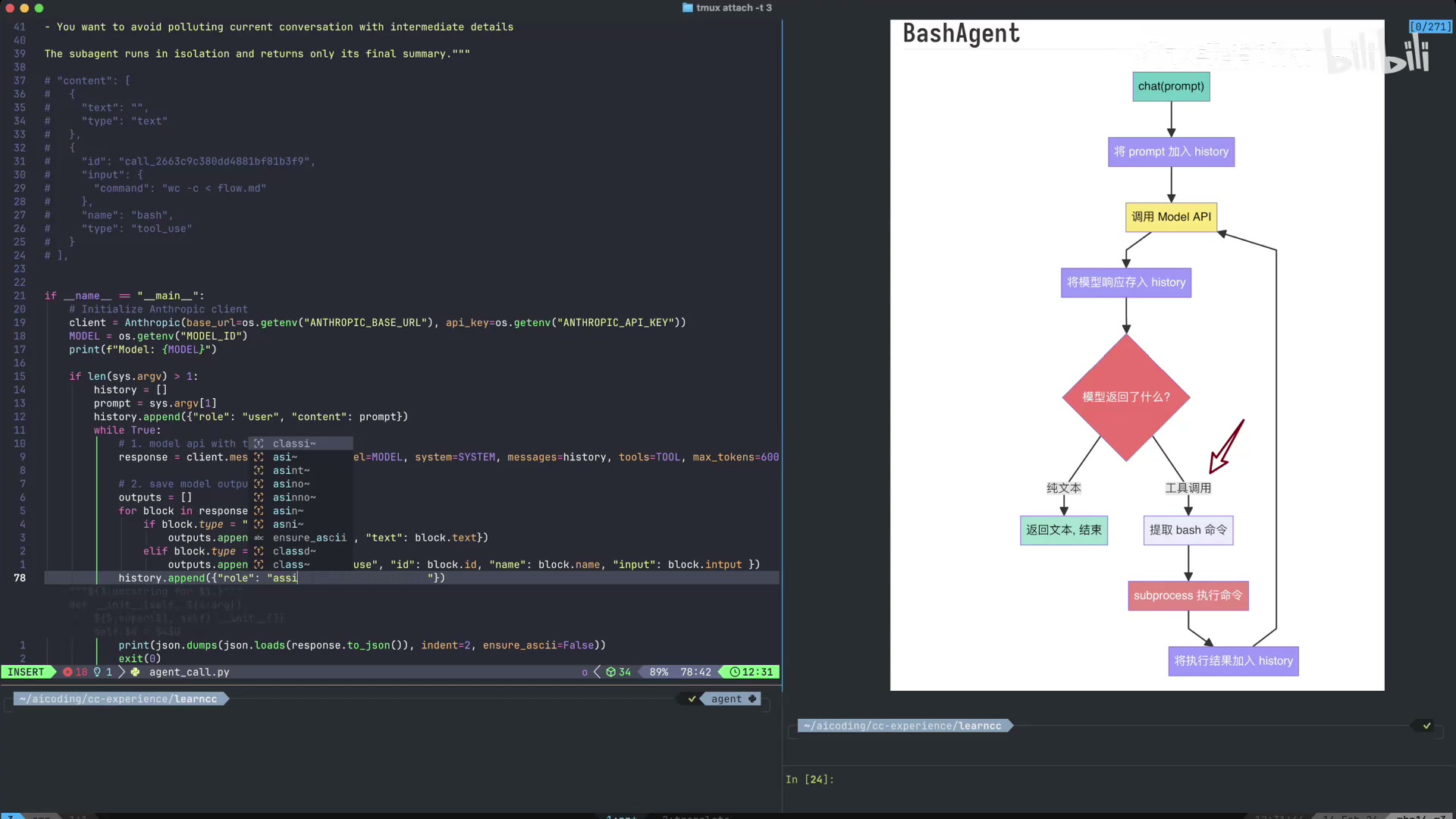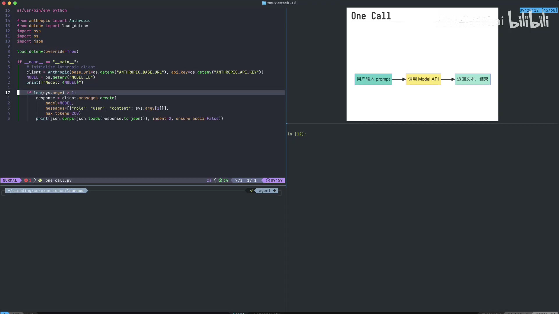 本视频详细演示了如何从零开始构建一个基于 LLM 的 Bash Agent。核心在于从简单的“单次问答”进化为具备 Agentic Loop 的智能体。通过定义 Tool Use 规范(特别是 Bash 工具)和维护完整的 Message History,模型能够自主决定何时调用命令行工具,并根据执行结果进行下一步决策。这种架构是构建类似 Claude Code 等高级编程助手的基础,实现了从“被动回答”到“主动执行”的跨越。