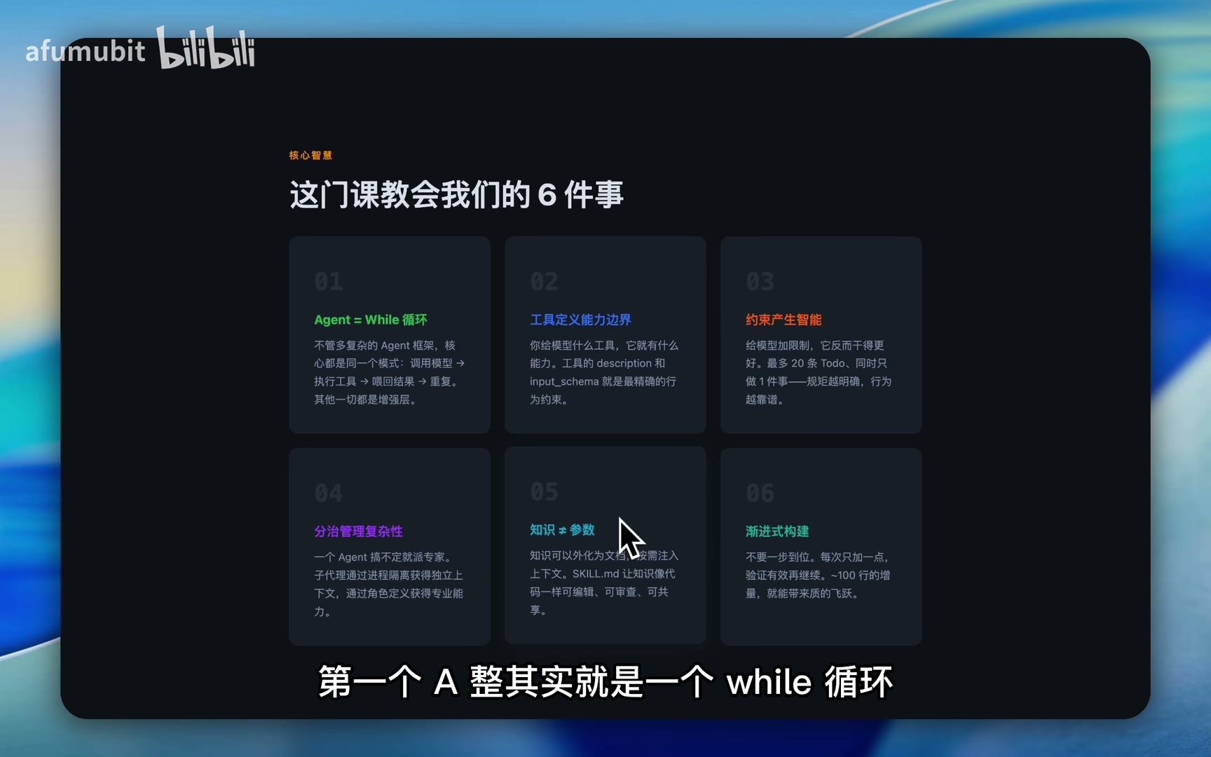 本视频通过从零构建一个 Mini Claude Code 的过程,深入浅出地拆解了 AI 编程智能体的核心原理。视频指出,无论多么复杂的 Agent 框架,其本质都是一个 While True 循环:模型思考、调用工具、获取结果、反馈思考。