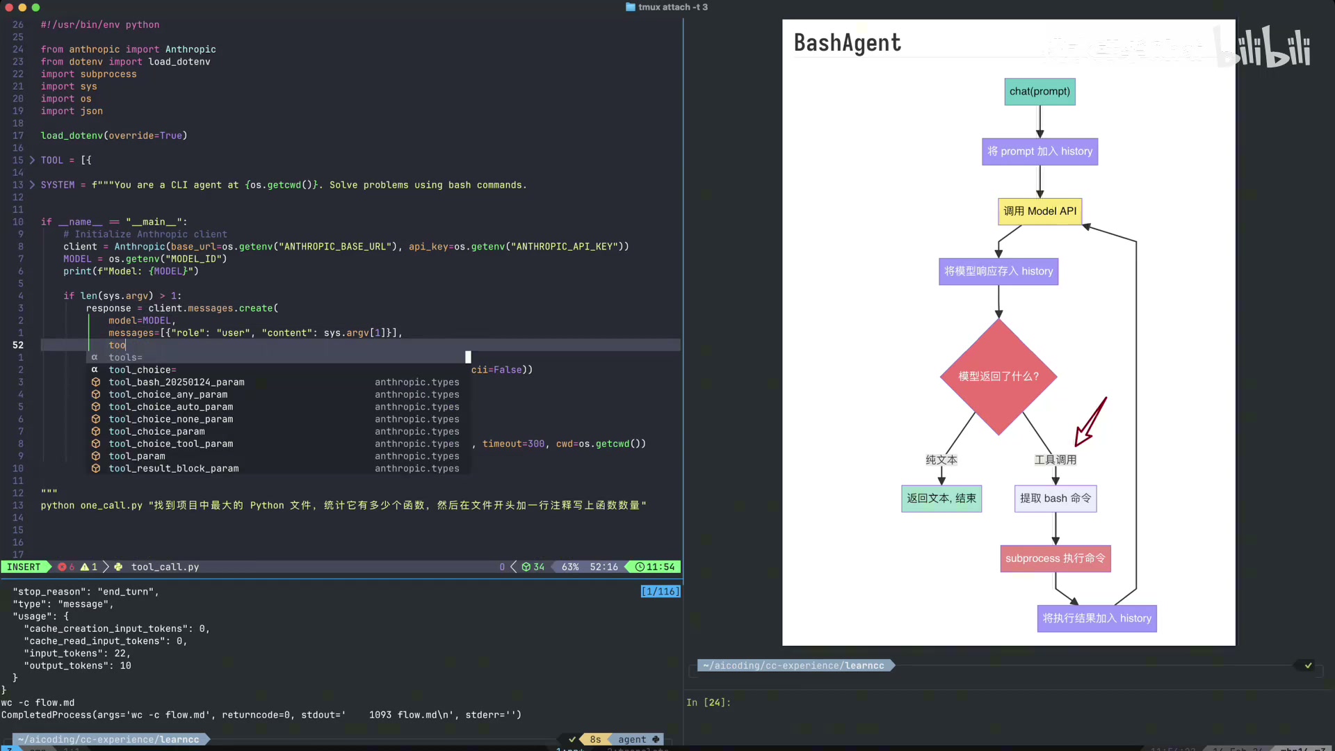 bash)和输入参数(如command)。 - 执行工具:使用