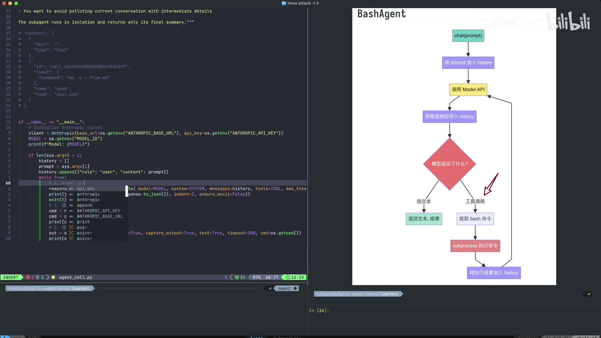 本视频详细演示了如何从零开始构建一个基于 QwenCoderPlus 模型的 BashAgent。内容涵盖了从最基础的 API 调用,到发现单次调用的局限性,再到引入 Agentic Loop 和 Tool Use 机制来实现自动化的命令执行与多步任务处理。